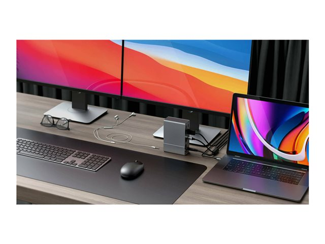 La station d'accueil HyperDrive GEN2 14 ports Thunderbolt 3 est une station d'accueil puissante, de niveau entreprise, dotée de 14 ports et offrant un taux de rafraîchissement deux fois plus rapide, des vitesses de transfert de données deux fois plus rapides et une alimentation de charge deux fois plus rapide. Un port TB3 en aval assure un transfert de données à 40 Gbps et une alimentation de 15 W pour tous les périphériques TB3, tandis que le port TB3 en amont fournit une alimentation de 85 W à l'ordinateur hôte. Il permet la prise en charge d'un double affichage 4K 60 Hz pour les périphériques compatibles MST, et offre des fonctions Gigabit Ethernet, audio numérique coaxial et optique Toslink. En outre, vous pouvez connecter en guirlande six stations d'accueil ou périphériques TB3 à HyperDrive.