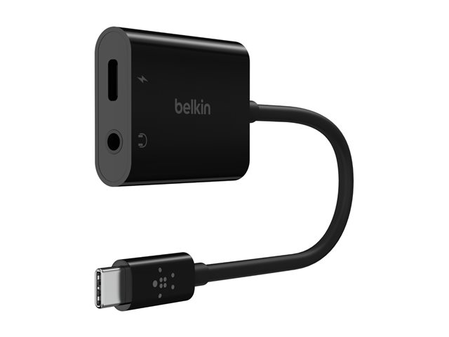 Belkin RockStar - USB-C vers jack de casque / adaptateur de charge - 24 pin USB-C mâle pour jack mini, 24 pin USB-C femelle - 19.6 cm - USB Power Delivery (60W)