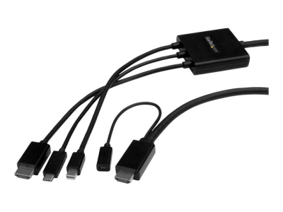 StarTech.com Câble adaptateur USB-C, HDMI ou Mini DisplayPort vers HDMI de 2 m - Convertisseur 3-en-1 USB Type-C HDMI Mini DP vers HDMI - Câble adaptateur - HDMI, Mini DisplayPort, 24 pin USB-C mâle pour HDMI, Micro-USB de type B (alimentation uniquement) - 2 m - noir - support 4K, alimentation USB, passif