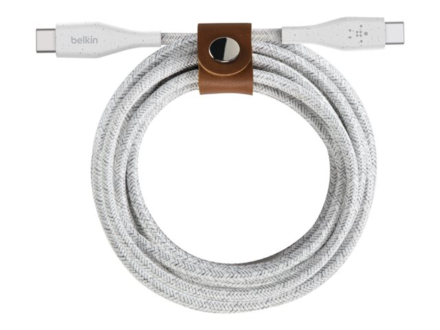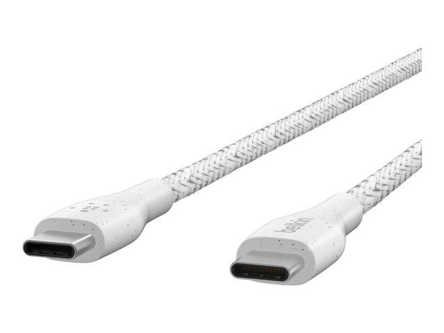 Le câble tressé USB-C vers USB-C Belkin BOOST?CHARGE est un câble de charge et de synchronisation USB-C qui prend en charge à la fois la charge rapide et la synchronisation des données. Il s'agit d'un câble en nylon à double tresse pour une résistance et une durabilité accrues.