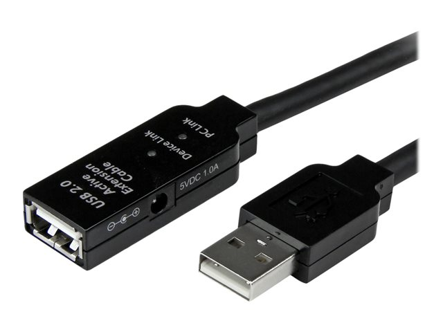 StarTech.com Câble d'extension USB 2.0 actif de 5m - Prolongateur / répéteur / rallonge USB - Mâle / Femelle - Noir - Rallonge de câble USB - USB (F) pour USB (M) - USB 2.0 - 5 m - actif - noir - pour P/N: LTUB1MBK, SVA5H2NEUA, UUSBOTG USB2AAEXT5M