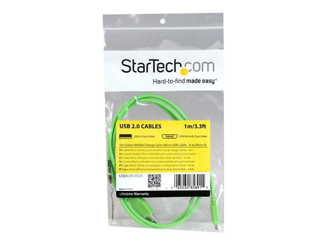 Le câble Micro USB 1 m vert USBAUB1MGN est idéal pour ajouter une touche de couleur dans votre vie et constitue une solution fiable de chargement et de synchronisation de vos appareils mobiles Micro USB. De plus, sa conception slim permet de le brancher dans vos appareils sans avoir à les sortir de leur étui à chaque chargement ou synchronisation.
