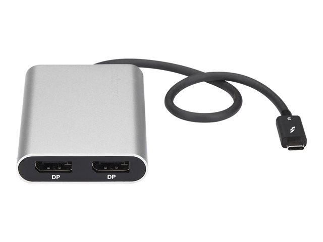 Cet adaptateur Thunderbolt 3 hautes performances vous permet de raccorder deux écrans DisplayPort 4K 60 Hz à votre ordinateur Windows ou Mac par le biais d'un seul port Thunderbolt 3, ou de connecter votre port Thunderbolt 3 à un écran 5K 60 Hz au moyen de deux câbles DisplayPort. L'adaptateur vidéo Thunderbolt est compatible avec les systèmes informatiques prenant en charge Thunderbolt 3, comme les modèles de MacBook Pro, Dell Precision et Dell XPS. Thunderbolt 3 est un protocole qui utilise le connecteur USB-C , mais votre système informatique doit prendre en charge Thunderbolt 3 pour que l'adaptateur fonctionne comme prévu. Si vous connectez l'adaptateur à un port USB-C qui ne prend pas en charge Thunderbolt 3, l'adaptateur ne fonctionnera pas.