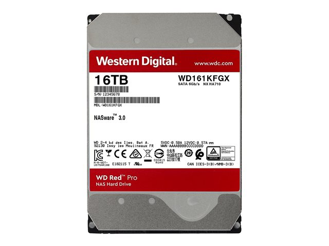 WD Red Pro WD161KFGX - Disque dur - 16 To - interne - 3.5" - SATA 6Gb/s - 7200 tours/min - mémoire tampon : 512 Mo WD161KFGX