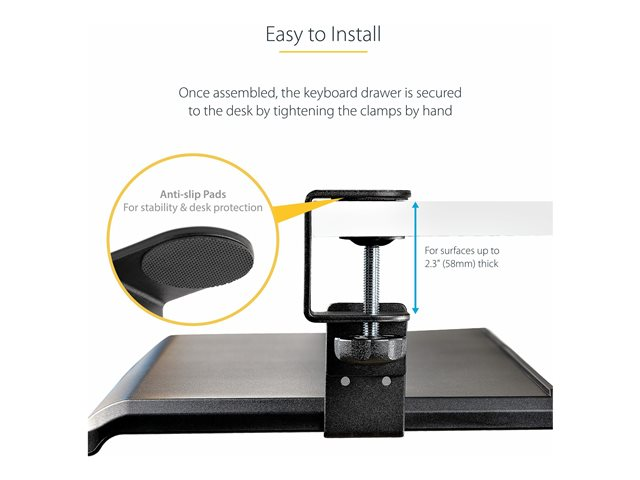 StarTech.com Under-Desk Keyboard Tray, Clamp-on Keyboard Holder, Supports up to 12kg (26.5lb), Sliding Keyboard and Mouse Drawer with C-Clamps, Height Adjustable Keyboard Tray - Black - Ergonomic Keyboard Tray (KEYBOARD-TRAY-CLAMP1) - Tiroir à clavier - montable sous bureau - noir KEYBOARD-TRAY-CLAMP1