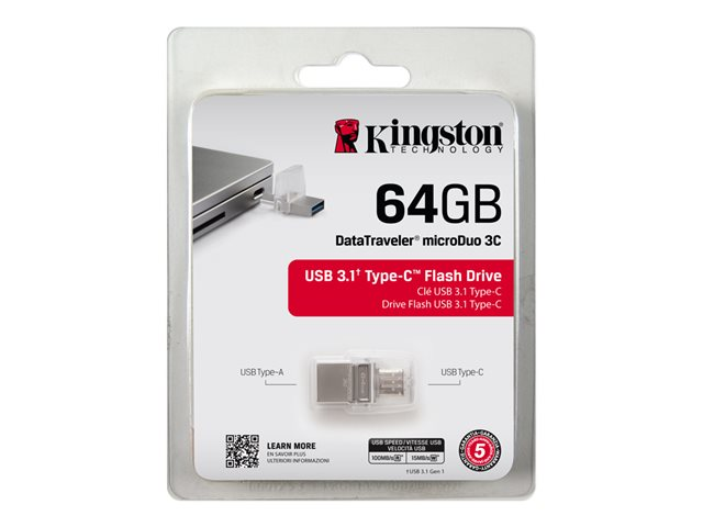Kingston DataTraveler microDuo 3C - Clé USB - 64 Go - USB 3.1 / USB-C - pour Apple MacBook (Early 2015, Early 2016, Mid 2017); MacBook Air (Late 2018); MacBook Pro (Late 2016, Mid 2017, Mid 2018) DTDUO3C/64GB