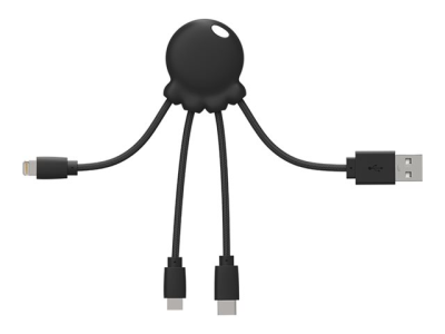 Xoopar Octopus - Câble Lightning - USB mâle pour Micro-USB de type B, Lightning, 24 pin USB-C mâle - 10 cm - noir