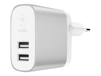 Belkin BOOST CHARGE 2-Port Home Charger - Adaptateur secteur - 24 Watt - 4.8 A - 2 connecteurs de sortie (USB) - sur le câble : Lightning - argent