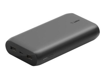 Belkin BOOST CHARGE - Banque d'alimentation - 20000 mAh - 3 connecteurs de sortie (USB, 24 pin USB-C) - sur le câble : USB, USB-C - noir