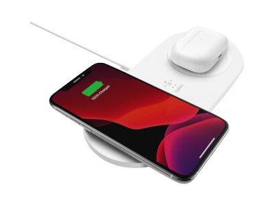Belkin BOOST CHARGE Dual - Plot de charge sans fil + adaptateur secteur - 15 Watt - blanc - pour Apple iPhone 11, 11 Pro, 11 Pro Max, 8, 8 Plus, X, XR, XS, XS Max; Samsung Galaxy Note10, Note10+, S10, S10+, S10e WIZ008VFWH