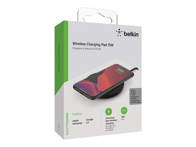 Belkin BOOST CHARGE - Plot de charge sans fil + adaptateur secteur - 15 Watt - QC 3.0 - noir