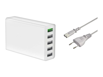 DLH - Adaptateur secteur - 50 Watt - Quick Charge 3.0 - 5 connecteurs de sortie (USB) - blanc