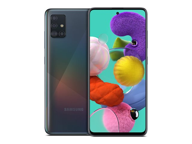 Samsung Galaxy A51 - 4G smartphone - double SIM - RAM 4 Go / Mémoire interne 128 Go - microSD slot - écran OEL - 6.5" - 2400 x 1080 pixels - 4x caméras arrière 48 MP, 12 MP, 5 MP, 5 MP - front camera 32 MP - noir écrasement de prisme