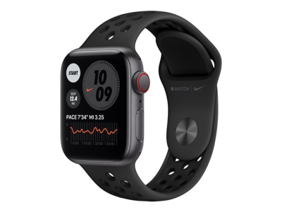 Apple Watch Nike SE (GPS + Cellular) - 40 mm - espace gris en aluminium - montre intelligente avec bracelet sport Nike - fluoroélastomère - anthracite/noir - taille du bracelet : S/M/L - 32 Go - Wi-Fi, Bluetooth - 4G - 30.68 g MG013NF/A