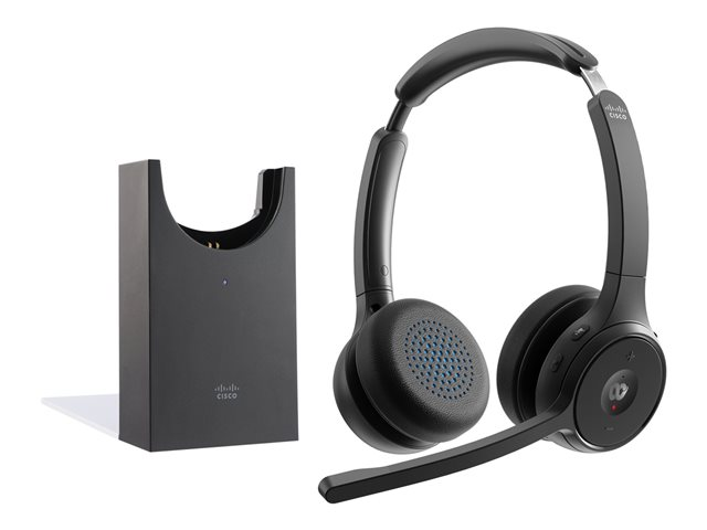 Cisco Headset 722 - Micro-casque - sur-oreille - Bluetooth - sans fil - noir de charbon - avec support de chargement - Cisco Webex Certified