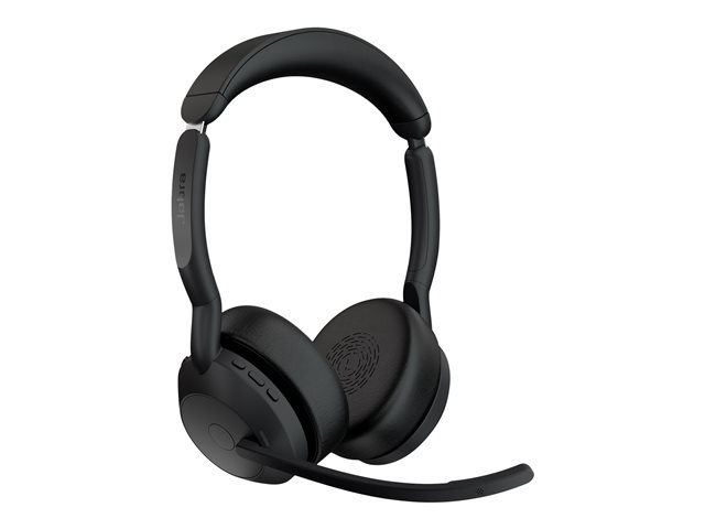 Jabra Evolve2 55 UC Stereo - Micro-casque - sur-oreille - Bluetooth - sans fil - Suppresseur de bruit actif - USB-C, USB-A - noir - avec support de chargement - certifié Zoom, Certifié pour Microsoft Teams, Cisco Webex Certified, Optimisé pour la CU, Certifié Alcatel-Lucent, Certifié Avaya, Certifié Unify, Certifié MFi, Certifié Google Meet, Certifié Amazon Chime, Certifié Google Fast Pair 25599-989-989