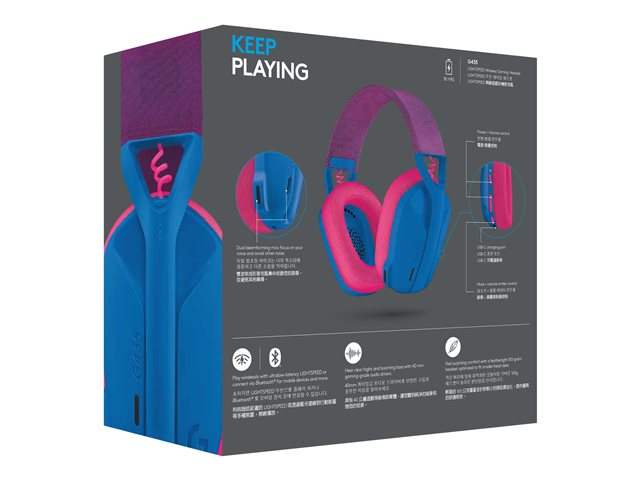 Logitech Lightspeed G435 - Micro-casque - circum-aural - fréquence/Bluetooth radio de 2,4 GHz - sans fil - bleu - Certifié Discord