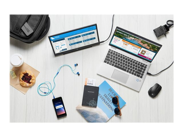 Utilisez un adaptateur pour alimenter et recharger en même temps votre ordinateur portable ou un appareil mobile et un accessoire USB, que vous soyez au bureau ou en déplacement, grâce à l'adaptateur USB-C de voyage HP 65 W, plat et étonnamment compact.
