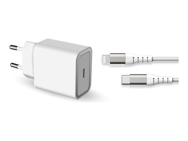 Force Power Lite - Adaptateur secteur - avec connecteur lightning et câble USB-C - 20 Watt - PD (24 pin USB-C) - blanc