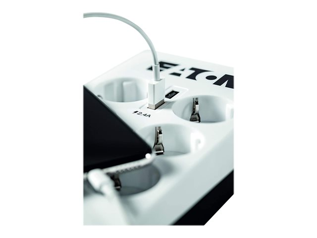 Eaton Protection Box 6 USB Tel@ Din - Protection contre les surtensions - CA 220-250 V - 2500 Watt - connecteurs de sortie : 6 - blanc