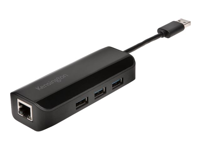 Kensington UA3000E - Adaptateur réseau - USB 3.0 - Gigabit Ethernet x 1 + USB 3.0 x 3 - noir