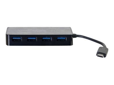 Le concentrateur USB-C vers USB-A à 4 ports agrandit les capacités USB car il fournir quatre ports USB-A pour connecter des périphériques dans un seul port USB-C. Ce concentrateur est idéal pour prendre en charge les claviers, les souris et autres appareils USB de petite puissance. De petites dimensions, léger et portable, ce concentrateur se range facilement dans la housse ou la pochette d'un portable. Avec un débit de transfert atteignant 5 Gb/s, il est totalement conforme à USB 3.0 (USB 3.1 Gén 1), rétrocompatible avec les périphériques USB 2.0 et USB 1.1,m et prend en charge tous les périphériques USB, y compris les claviers et les souris, les smartphones, tablettes et autres périphériques USB. Ce concentrateur est compatible avec tous les ordinateurs ou les Mac activés par USB. C'est un appareil plug and play sans logiciel ni pilote. Ce concentrateur peut être auto-alimenté par le port USB-C ou peut être utilisé avec l'adaptateur à courant alternatif fourni, pour relier des appareils USB grands consommateurs d'électricité, tels qu'un adaptateur de disque dur USB ou d'USB à vidéo.