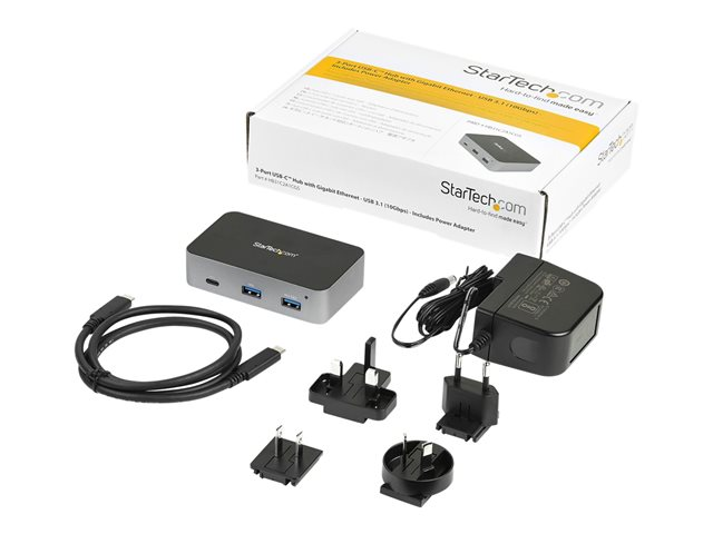StarTech.com Hub USB-C à 3 ports - 10 Gbps - Avec 2 ports USB-A, 1 port USB-C, 1 port GbE - Câble hôte avec longueur de 1 m (HB31C2A1CGS) - Concentrateur (hub) - 1 x USB-C + 2 x USB 3.1 + 1 x 10/100/1000 - de bureau - CA 110/240 V - pour P/N: PEXUSB321C