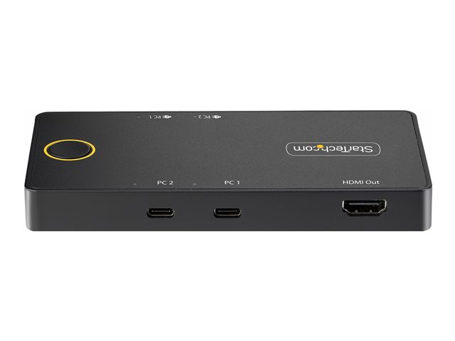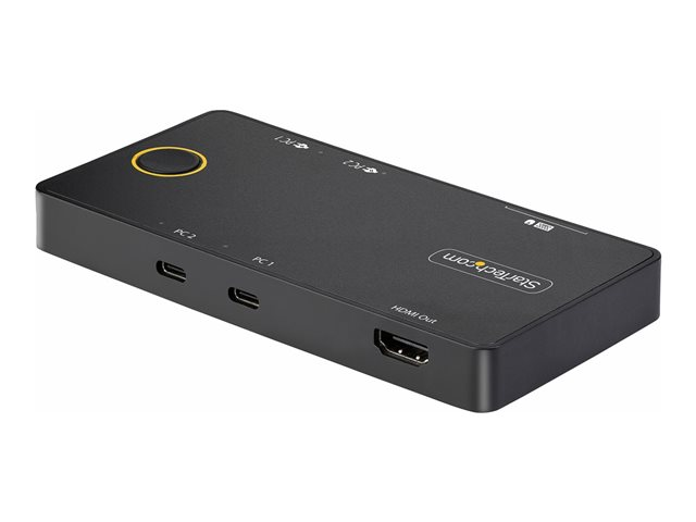 Ce commutateur KVM USB Type-C permet aux utilisateurs de basculer entre deux ordinateurs portables USB-C, en partageant un moniteur HDMI 4K 60Hz, un clavier et une souris, tout en chargeant simultanément chaque ordinateur portable.