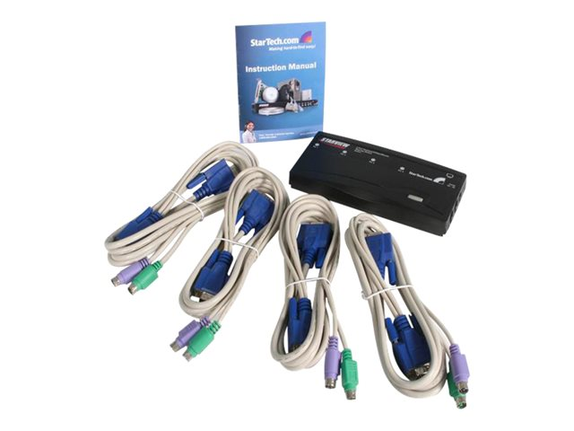 StarTech.com Switch KVM PS/2 VGA à 4 ports avec câbles - Kit commutateur écran clavier souris - 1920 x 1440 - Noir - Commutateur KVM - 4 x KVM port(s) - 1 utilisateur local - de bureau - pour P/N: SVECON6