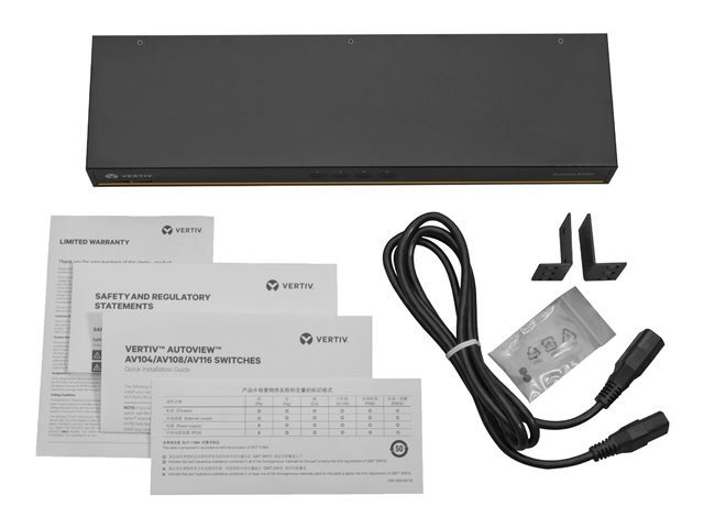 Avocent AutoView AV104 - Commutateur KVM - 4 x KVM port(s) - 1 utilisateur local - de bureau, Montable sur rack - CA 100 - 240 V - avec 4 x câbles 26 broches vers VGA